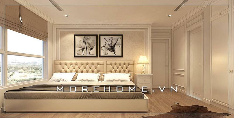Thiết kế giường ngủ chung cư cao cấp phong cách tân cổ điển sang trọng, tiện nghi