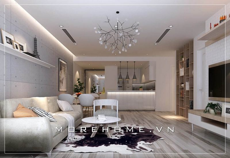 Nội thất phòng khách chung cư được thiết kế theo phong cách hiện đại trang nhã.