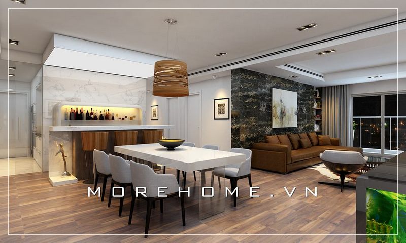 Thiết kế nội thất phòng ăn hiện đại và trẻ trung cho cư dân chung cư.