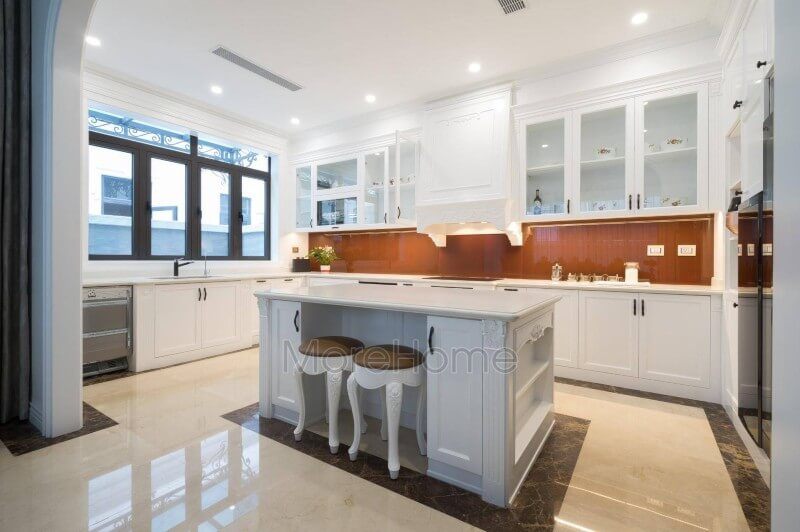 Quý khách đang cần tìm một công ty thi công và sản xuất nội thất bếp đẹp cho biệt thự tại Vinhomes Imperia Hải Phòng thì có thể tham khảo dự án thi công hoàn thiện nội thất bếp tân cổ điển của Morehomes tại đây.